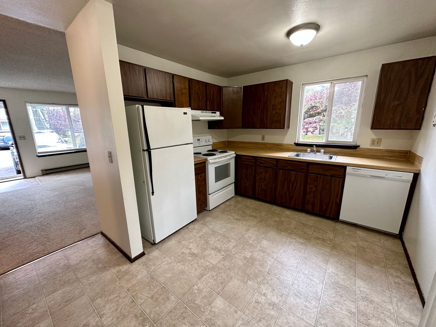 Spacious, 2 bedroom, 1 bath lower corner unit located just a few blocks away and within walking distance to Western Washington University and Sehome Village. The kitchen features an electric oven/range, refrigerator, and dishwasher with a glass sliding door to your own private patio/deck. Enjoy the convenience of having a separate laundry closet off of the kitchen with a full-size washer and dryer. Plenty of off-street parking and locking mailboxes. Rent includes water/sewer/trash, tenants are responsible for electricity. No pets. No smoking.
