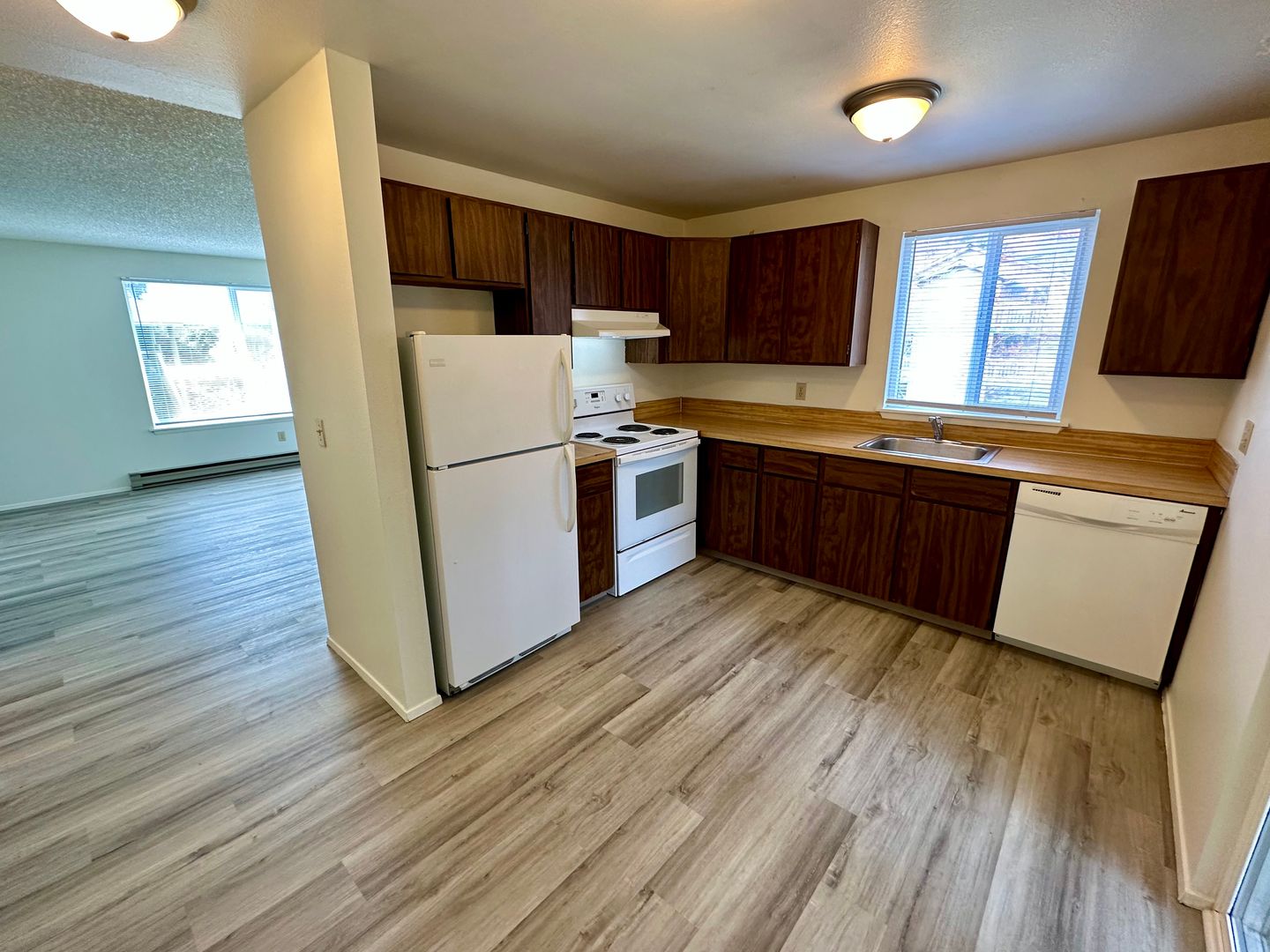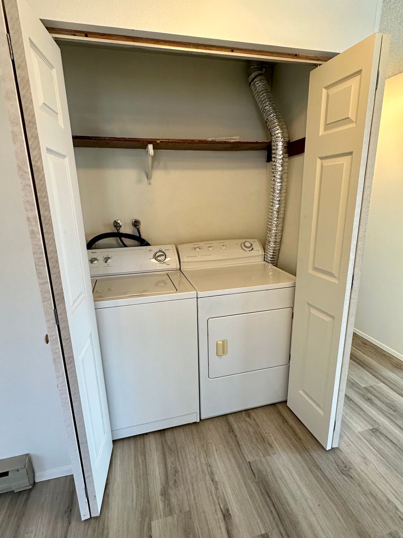 Spacious, 2 bedroom, 1 bath upper corner unit located just a few blocks away and within walking distance to Western Washington University and Sehome Village. The kitchen features an electric oven/range, refrigerator, and dishwasher with a glass sliding door to your own private patio/deck. Enjoy the convenience of having a separate laundry closet off of the kitchen with a full-size washer and dryer. Plenty of off-street parking and locking mailboxes. Rent includes water/sewer/trash, tenants are responsible for electricity. No pets. No smoking.